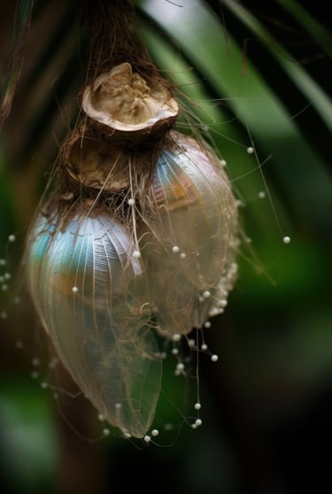 The chrysalis symbolizes profound personal metamorphosis, representing the creative process itself. In this context, AI serves as a co-creator, generating visual poetry that challenges our views on artistic origin. The translucent membrane encapsulates the space between conception and manifestation, merging machine learning's precision with human creativity